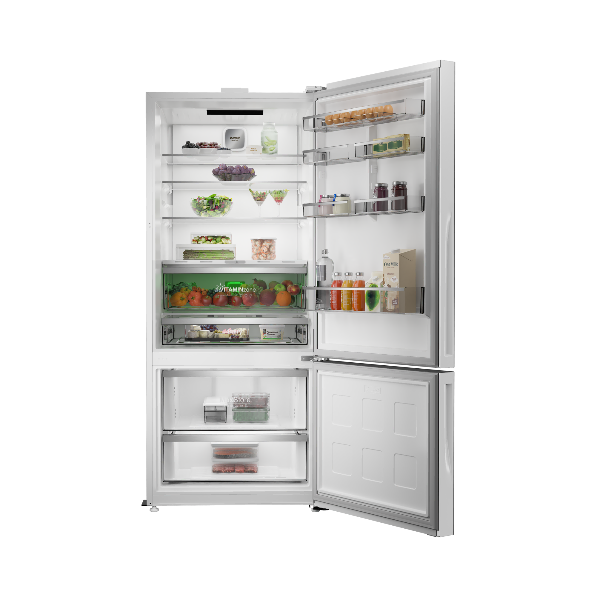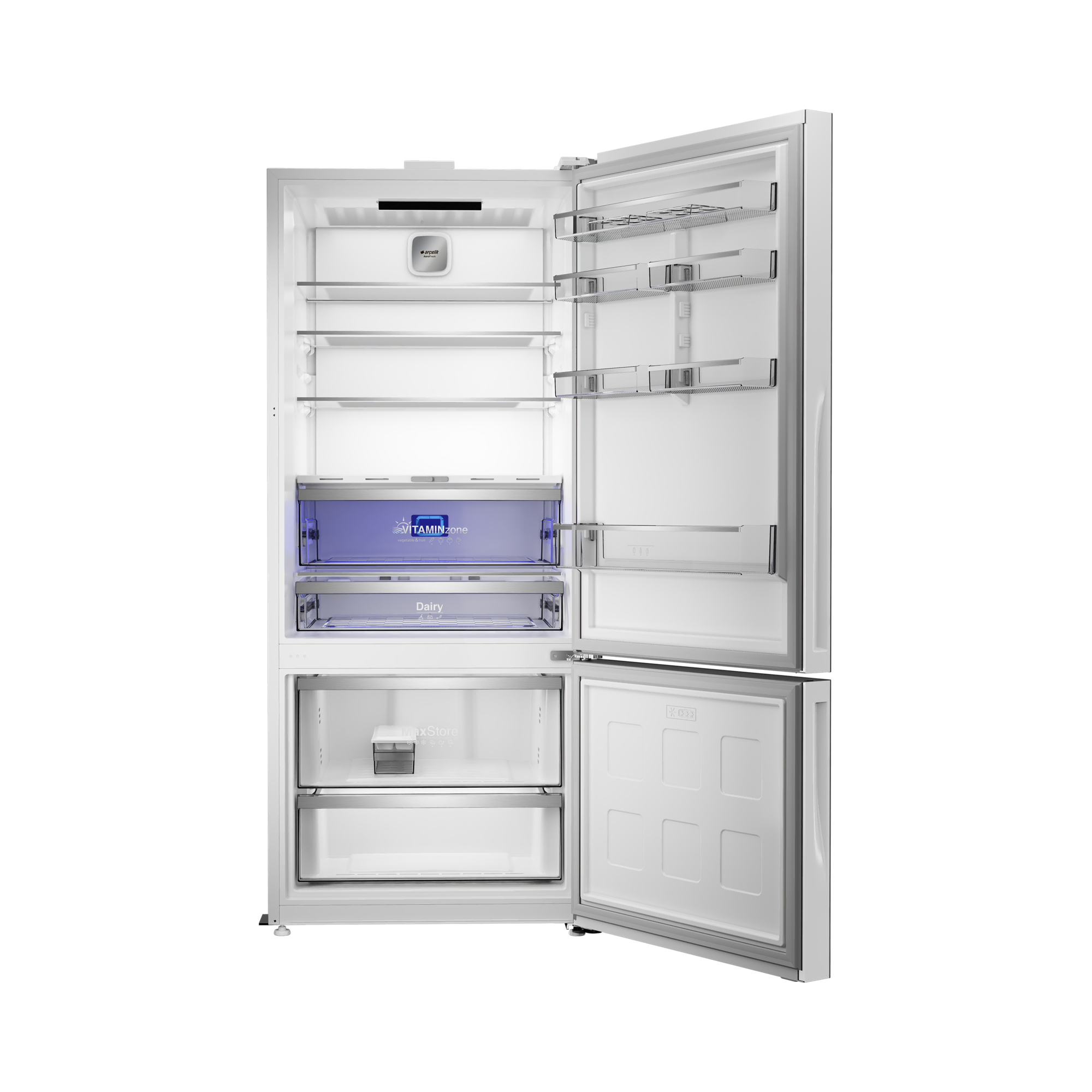 ARÇELİK 278551 EBC AI Fit Beyaz Cam Yapay Zeka Teknolojili Alttan Donduruculu Buzdolabı